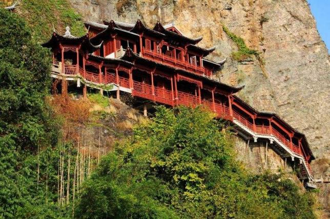 悬空寺位于山西省大同市浑源县恒山金龙峡西侧翠屏峰的峭壁间,素有“悬空寺,半天高,三根马尾空中吊”的俚语。是中国仅存的佛、道、儒三教合一的独特寺庙。