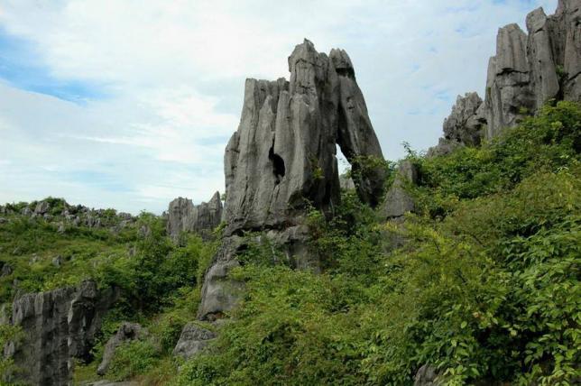文市石林位于灌阳县文市镇西就村,东临灌江。石林由大理石侵蚀而成,为典型的喀斯特地貌,占地约5平方公里。石林奇石罗列,怪石叠出,具有双层结构、剑状峰顶等特点。形状奇特,栩栩如生,可与云南路南石林相媲美。石林旁田陌相间,石径通幽,更有古井清泉,小桥流水,仿若人间仙境。据岩溶学博士蒋忠城先生考证文市石林后发现其有两大显著特点:一是它是一种比云南路南石林更典型的剑状岩溶地貌。二是它有比世界其他热带地区的剑状岩溶地貌具有更复杂的发育历史。