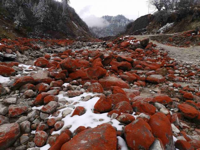 红石是大自然赐给海螺沟最珍惜的物种之一。在海螺沟、燕子沟、南门关沟、雅家埂都分布着大面积的红石滩。