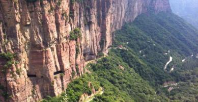 把郭亮村和郭亮村挂壁公路分别介绍,实在是因为它们都太有特色了!河南辉县沙窑乡郭亮村高居太行山悬崖顶端,以前村民进出山的通道是顺绝壁石缝凿出的一溜石窝,俗称“天梯”。上世纪70年代,村民在村前绝壁上苦干5年,硬是用钢钎、铁锤开凿出一条高5米、宽4米、长1300米的石洞公路。