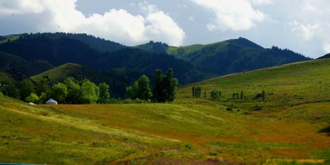 6月是琼库什台草原最美的时候,大自然也有如人体般曼妙性感的身姿。绿色的波涛像一个个女性的胴体,牛羊在这些美人臀、美人窝里踩来踩去,这种柔美的质感遗世独立。