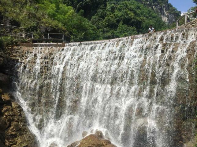 沿着楼梯爬上陡峭的悬崖,就能到达亚洲第一的洞中天河,光线与水流同时从裂口倾泻而下、直泻潭底的景致壮观无比。