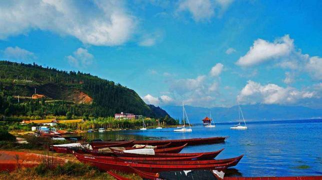 抚仙湖,因湖水清澈见底、晶莹剔透,被古人称为“琉璃万顷”。是中国最大的深水型淡水湖泊,珠江源头第一大湖,属南盘江水系。抚仙湖景区主要的旅游景点有禄充村、界鱼石、明星景区、孤山岛等。游客可以在湖畔露营,在湖中泛舟、游泳。湖畔也有众多的度假村、宾馆,每逢夏季,越来越多的游客来此避暑度假。