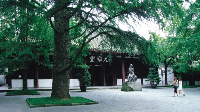 杜甫草堂坐落在浣花溪畔,这里曾是杜甫流寓成都时的故居,这里环境清幽,植被茂密,古树、池塘、泉水一应俱全。在四年的时间里,杜甫留下了240首诗词呢!