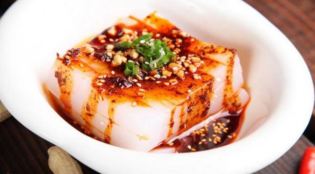这是一种豌豆凉粉,据说因为太辣吃了会飚出眼泪,看着好像遇到了伤心事情,所以就叫伤心凉粉。