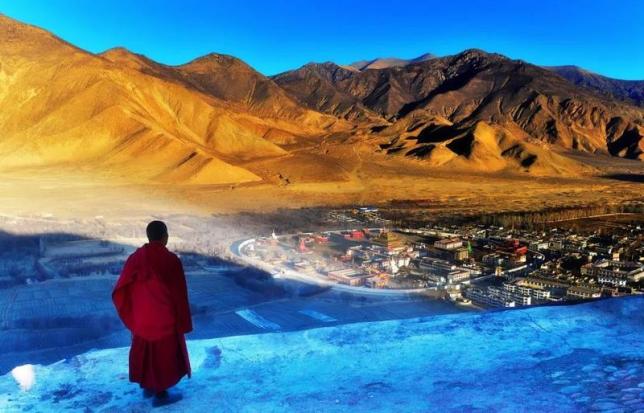 哲蚌寺坐落于 拉萨 西郊的山坳之中,是藏传佛教最大的寺院。寺院的建筑群规模宏大,白色的房屋和红色殿堂鳞次栉比的铺满山腰,远远望去像是巨大的米堆,对着山腰拍摄出的照片非常壮观。