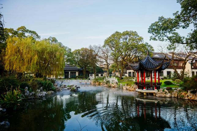 三潭印月又称“小瀛洲”,位于西湖中部偏南的湖面上,是西湖三岛中面积最大、唯一能上岛游览的一个,被誉为“西湖第一胜境”,是江南水上庭院艺术的代表作。岛屿的轮廓像一个“田”字,外圈的环形上是优美的江南园林,内部被十字形的岛和桥分割成四个小湖,充满诗情画意。