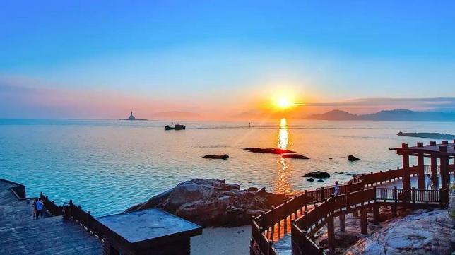 南门湾看日出,建议夏季时候早上5点(傍晚也可看日落),从海堤边的石阶可以走到沙滩上,脱掉鞋子踩走海水,沿着海堤静静的走上一段,感觉很舒服。南门湾,一边是蔚蓝的大海,一边是古朴的渔村,在这里没有城市的喧嚣,只有那份宁静与纯真。看完日出,吃碗热乎乎的古早味的米圆,是东山本地人的喜爱。