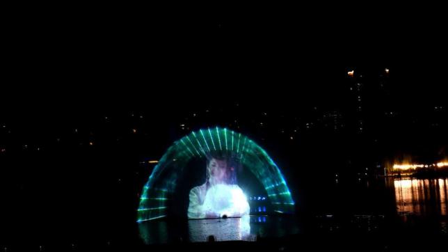 水幕灯光秀翩翩来 人间美景无处寻,光、影,水流与星空交汇,完美音画合一,水幕与自然夜空融为一体,动画内容就像漂浮在空中,感受虚无缥缈般的奇幻意境