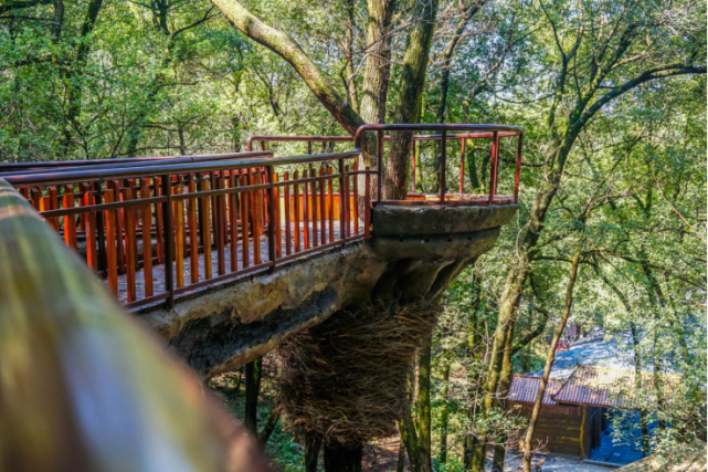 亚热带森林乐园空中环线,将一棵棵树连接而成,建成了石燕湖森林空中栈道,空中环线上还有观音庙祈福,万福万寿塔登高,摸五子登科树、许愿金龟池、踏通天响鼓梯,湖南省内唯一透明玻璃厕所,藤桥等