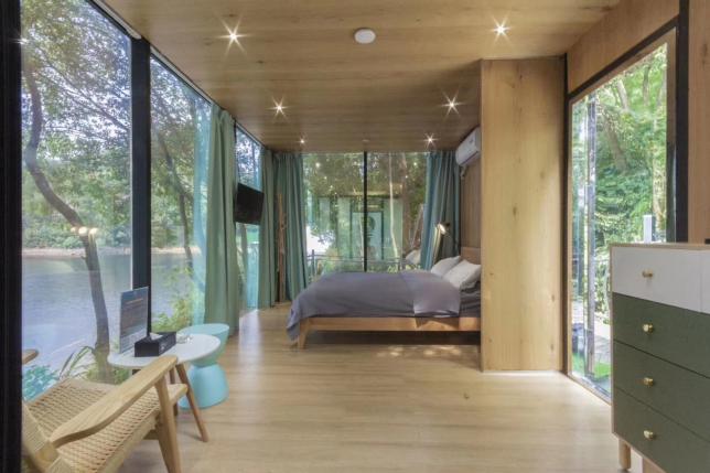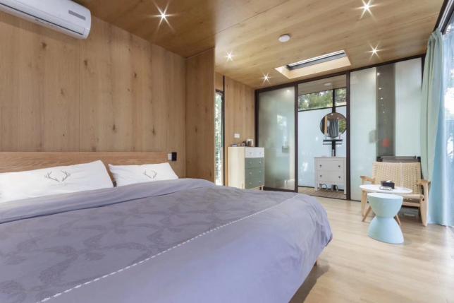 石燕湖境界屋比较适合小情侣出游喔,有个大床房,玻璃屋里面生活设施齐全,洗漱台,洗澡间,躺椅,置物柜,空调都有的呢~