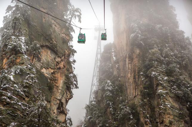 喜欢雪景的朋友,自然不可错过每年的12月和1、2月份,难得的高山雪景一年也就那么几次,而且下得快融化也快。张家界天门山景区 天门山因自然奇观“天门洞”而得名。游览天门山时,必须乘坐长达7500米的索道,可以在缆车中俯瞰脚山中美景。