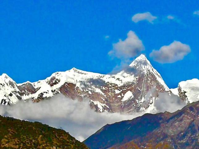 南迦巴瓦峰地处喜马拉雅山脉、念青唐古拉山脉和横断山脉的交会处,是中国西藏林芝地区最高的山,海拔7782米,是喜马拉雅山的东端。它是西藏最古老的佛教“雍仲本教”的圣地,有“西藏众山之父”之称。同时,紧邻着的雅鲁藏布大峡谷绕着他转了一个马蹄形的弯,随后通向印度洋方向延伸出去。南迦巴瓦峰它还有另一个名字“木卓巴尔山”,其巨大的三角形峰体终年积雪,云雾缭绕,从不轻易露出真面目,所以它也被称为“羞女峰”。