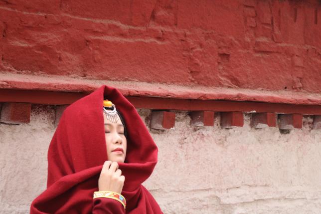 还有西藏独有的浓郁色泽的墙,也是取景的好地方。搭配藏式服饰,如何拍就如何上镜!