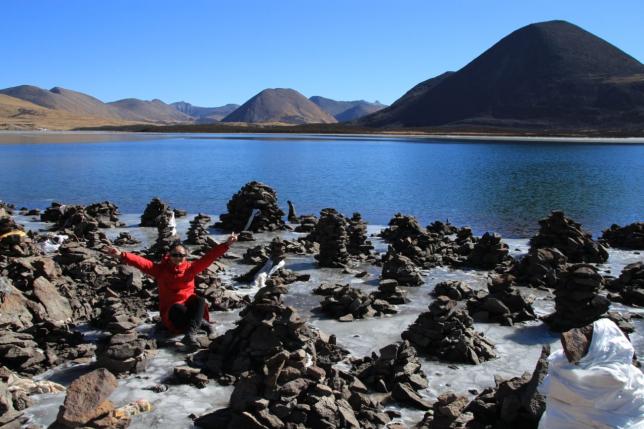 离开拉萨市区,第一站是思金拉错。思金拉错湖藏族人心中的财神湖,湖中玛尼堆林立,传说身上的宝贝丢入湖中,可以发财。“我把最值钱的手机丢进去了,等待一夜暴富的梦醒来”