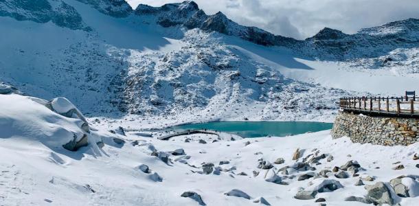 2.达古冰川:中国第一彩色冰川(这里还有许多金丝猴、小熊猫等珍稀动物哦)在达古冰川,世界的颜色似乎只剩下两种:蓝色和白色。这纯净的色 调再裹着明媚的阳光,让人沉醉其中,所有的烦恼都能抛之脑后,旅行会给你带来纯粹的快乐。 达古冰川即使有大太阳温度也在-1℃左右,但是如果不吹风的话不算很冷,羽绒服毛衣围巾,全身最冷的地方是脚!穿保暖的鞋子