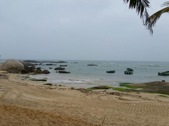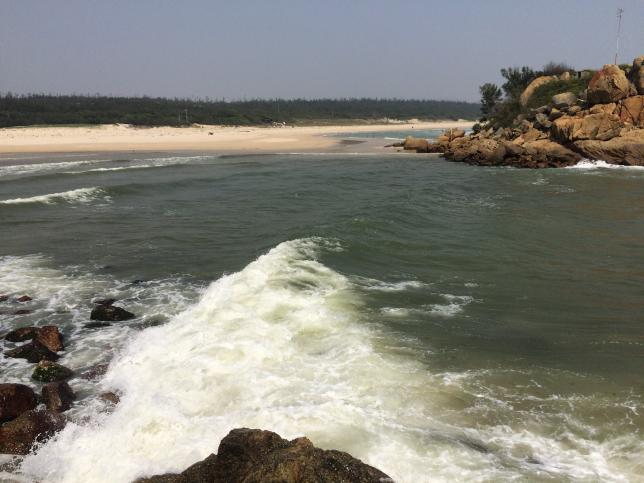 早晨,海上日出,红霞满天,波光粼粼,相映成趣;鸥群低翔,千帆迎日,景色美丽壮观;近岸水面,薄气缕缕,下水晨泳,清凉舒爽,泳后晨晒,身暖洋洋。太阳偏西,岸上椰林影覆水面,彤云缀空,凉风习习,海中晚浴,身爽心怡,疲劳消遁,醉迷忘归。