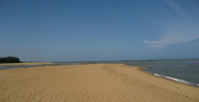 玉带滩,是一条自然形成的地形狭长的沙滩半岛,东侧是浩瀚的,西边为万泉河,内外相映,构成了一幅奇异的景观,在亚洲区可谓仅此独有。