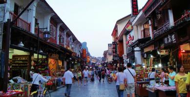 来到福利镇一定要逛逛百余米老街,即“画扇街”。选购中意的纪念品,或自己观赏,或带回去分送亲友。巧匠们就地取材,江边毛竹作扇骨,土产绵纸为扇面,手绘以桂林山水、阳朔风光、花鸟草虫,再题词盖印。画扇精致耐用。