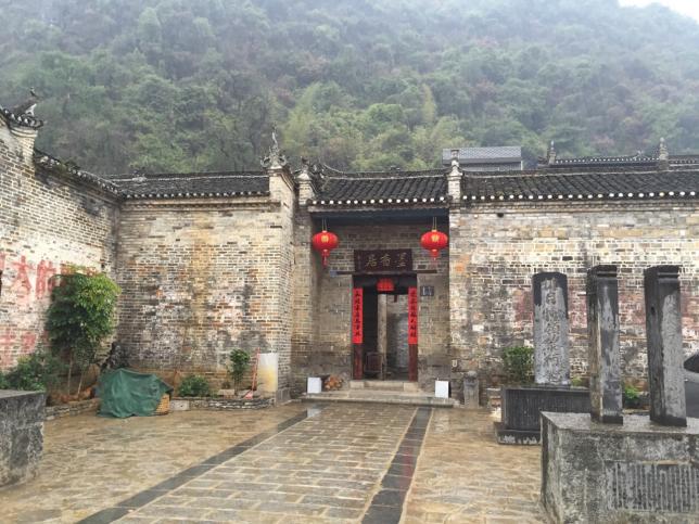 雄村,距桂林灵川大圩古镇村古镇7.5公里,始建于宋代。传说是由六条龙船载着先祖迁徙到雄村来。村上保留着完整的旧时村落格局,有上百栋明清建筑,现存有湖南会馆、江西会馆、财神殿等,村子的老建筑上保留了许多文革标语。