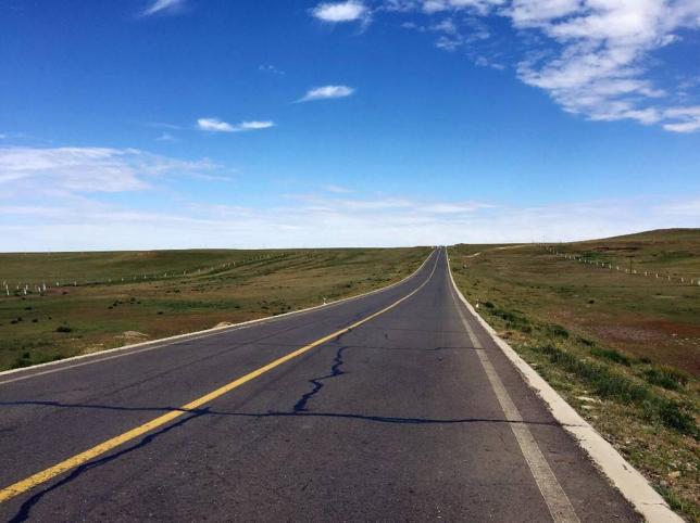 笔直的公路延伸到天尽头,路两旁的草原一望无际,这里是自驾者的天堂,随处停车都是景,边开车边听音乐边看风景,真心让人流连忘返!