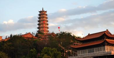 大佛寺座落在平远县大柘镇凤池村,距县城2公里,位于世界第一天然大佛身旁。全寺殿堂飞檐斗拱,金碧辉煌。一殿高于一殿逐级高升,气势磅礴。所有殿堂楼阁均以长廊连接,只要一进入寺门,晴天不晒太阳,雨天不走湿路,便可到达寺内任何一处,可见建造者的独具匠心。大佛寺目前珍藏有大量名人字画,还供奉有珍贵的本焕长老舍利子。平远大佛寺是梅州市乃至粤东地区规模最大的寺庙,是游人旅游休闲、生态观光、礼佛祈福的好去处。