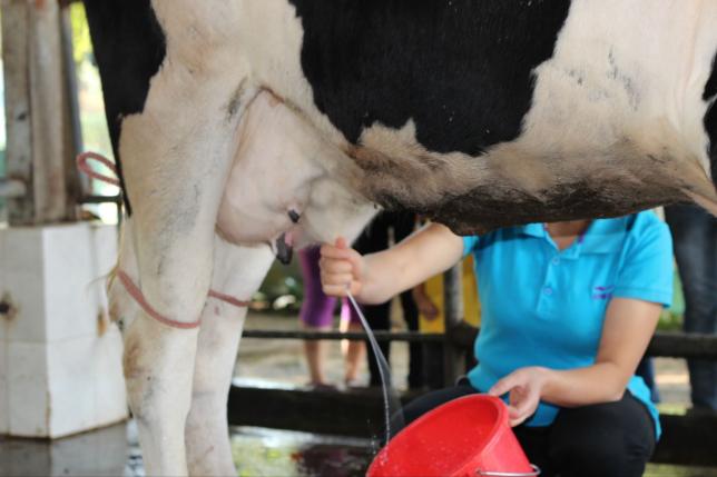 1挤牛奶 农场内的奶牛示范及文化展示基地是大陆唯一一家可以让游客近距离参观奶牛现代化饲养、观看自动挤奶过程,并学习牛奶文化的主题景点。在这里,爸爸妈妈们不仅可以带小朋友参观自动化及人工挤奶表演,了解有关奶牛、牛奶的各种知识,还可以跟奶牛来个亲密接触,让小朋友们用奶瓶喂喂小牛,体验其中的乐趣。