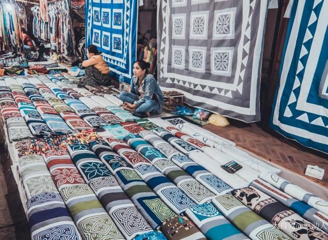 琅勃拉邦夜市,据说是东南亚最大的夜市,每天下午4点,小贩们如常开始在王宫到Th Kitsalat这一段路摆摊,这就是著名的琅勃拉邦夜市(Hmong Night Market),来琅勃拉邦不可不看的一个景点,很多远方的村民都带着上商品来到琅勃拉邦,以期向源源不断的外国游客卖个好价钱。就在市中心王宫博物馆前,很是热闹好看,因为曾经的法国殖民统治,街边房子多了一份西方风情。 琅勃拉邦是整个老挝行程中的惊喜,这座世遗古城,没有其他城市的暴土狼尘,游客虽然也很多,却莫名多了一份宁静。