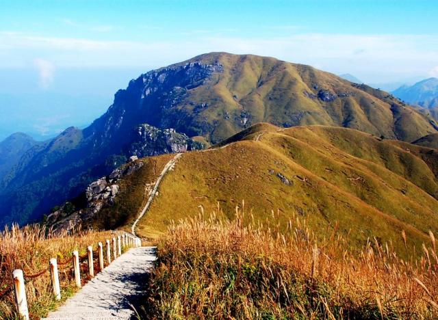 高山草甸是武功山的最大的特点也是从山底通向金顶的必经之路如果你走过了肯定会喜欢上这里这么高的山没有树有的是一片右一片的草地去的时候刚清明节夏天的时候应该更美