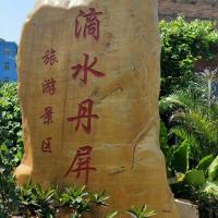 滴水丹屏原名滴水岩。是因为绝壁上部绿树成荫,壁上层滴水丹屏间裂隙常有水溢出,一点点往下滴,如朱帘垂挂。滴水丹屏这里感觉人不多,海水也挺清澈的,在这里玩耍人也不多比别的地方舒服多了。