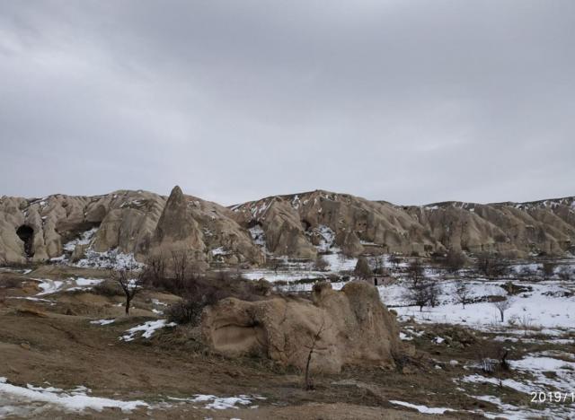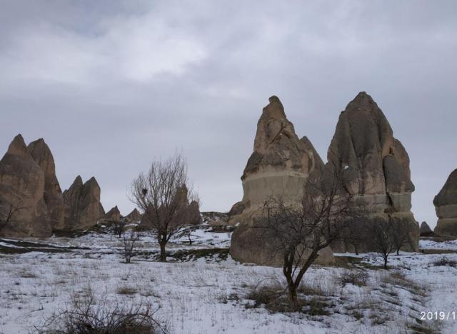 卡帕多奇亚曾被美国《国家地理》杂志社评选为“十大地球美景”之一的卡帕多奇亚。距今300万年前火山喷发熔岩覆盖形成的脆弱岩层被风和雨所侵蚀,形成赤、金、绿、灰等各种颜色的圆锥形和蘑菇形岩石,以及有岩洞的峡谷等壮观的超现实的风景。各种形态的石笋状的小山峰,加上一层薄雪,各种洞穴状的岩石,美不胜收。