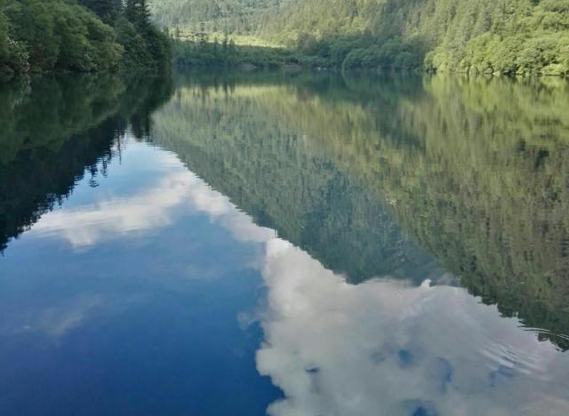 据说九寨沟的大熊猫最喜欢来这里游荡、喝水、觅食,大熊猫被当地的藏民视为吉祥的动物。这里也是九寨沟内鱼最多的海子,可以观赏到高山裸鲤鱼。右侧有一道飞流自熊猫海口飞扑直落深谷,中途又被悬崖下凸出的岩壁和巨石截成数段,数节叠瀑一气呵成,这道瀑布就是x熊猫海瀑布,隆冬时节,飞流结成冰瀑,形成一个瑰丽的冰晶世界。