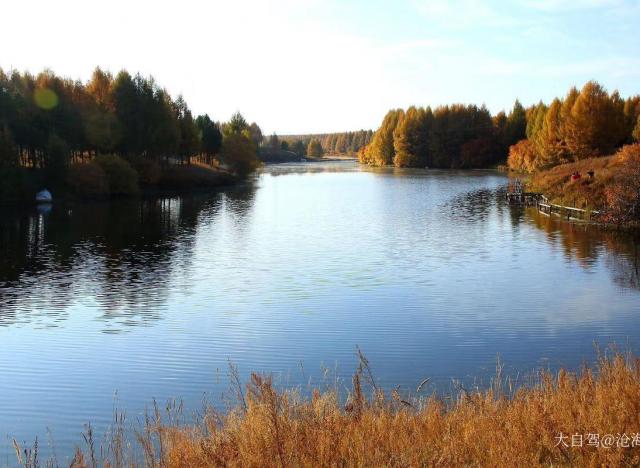 泰丰湖湖面呈“S”形,同一柄玉如意镶嵌在塞罕坝和乌兰布统之间。一面朝着辽阔无际的大草原,一面掩映在机械林场的针叶丛中。湖边躺着两弯慵懒的小船,船桨反射着西斜的霞光,静谧到只听得见撒网入水的声音,清幽宜人。