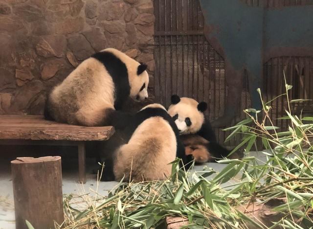 很可爱的一群小家伙,进去非常方便,刷身份证就能进成都大熊猫繁育研究基地。熊猫基地好大,不过我们去的时候最大的熊猫宝宝也已经8个多月了,长出了黑白相间的花纹,蜷成一团在睡觉,可爱。还看到了打架接力