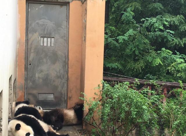 外地朋友到成都来,指名点姓要去熊猫基地看国宝大熊猫。找了个工作日带他去,提前网上买好票非常的方便,虽然是工作日,游客也非常的多,这次来运气不错,看到好几只熊猫baby,国宝就是国宝,如此炎热的夏天,我们在外面满头大汗,他在里面悠闲的吹着空调