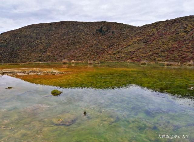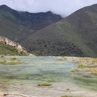 泉华滩是个钙化池,景区门口有藏民收门票,要价25一人,被我们降价到20一人。泉华滩有“小黄龙”之称。和黄龙一比规模真的是小,但相比于黄龙钙化池的只可远观,泉华滩则显得亲民多了。你可以走进它,更可以触摸它。池水没有黄龙绚丽但依旧多彩缤纷,但池