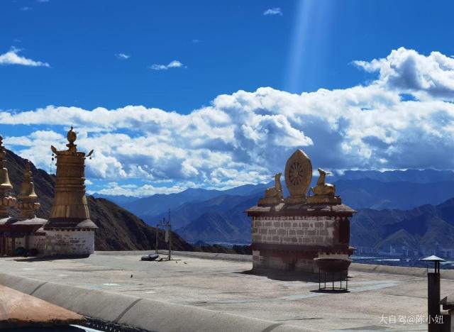 哲蚌寺坐落于拉萨西郊的山坳之中,寺院的建筑群规模宏大,白色的房屋和红色殿堂鳞次栉比的铺满山腰,远远望去像是巨大的米堆,对着山腰拍摄出的照片非常壮观。它在藏传佛教格鲁派中地位极高,内部建筑既大气又金碧辉煌,有很多美丽的珍宝,还有僧人的辩经仪式可以观看。