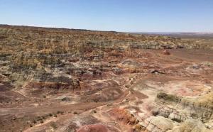 硅化木恐龙国家地质公园位于新疆维吾尔自治区昌吉回族自治州奇台县境内,地处天山北麓,准噶尔盆地东南缘。面积492平方公里,包括硅化木景区、恐龙沟景区、魔鬼城雅丹景区和石钱滩景区。这里的硅化木以分布集中、数量和规模巨大、保存极完整而著称。仅在公园硅化木景区11.65平方公里的面积范围内就出露有近千株,是世界上最壮观的硅化木群产地之一。