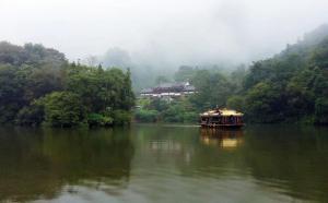 月城湖的湖水来自青城山上老霄顶的小溪,流淌到开阔的山间谷地,成为了一个小湖。这里在丈人峰和青龙岗之间。湖泊四周草木茂盛,湖水碧绿,周围的山谷倒影在水中,景色清幽,十分的舒服。湖中有游船,可以坐船游湖。
