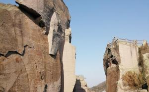 双合石壁为古蓬莱十景之一,由人工凿石板、石条而成,数百年来打造出50余处奇异的石景:有雄伟挺拔的石峰、形如刀削的石壁、色彩缤纷的石幔、曲径通幽的石廊、清泓见底的石潭。