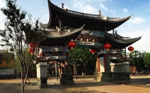 大理古城又名叶榆城、紫禁城、中和镇,古城其历史可追溯至唐天宝年间,现在的古城始建于明洪武十五年,古城外有条护城河,古城四周有城墙,东、西、南、北各设一门,均有城楼,四角还有角楼。门头“大理”二字是集郭沫若书法而成。城内街道为典型的棋盘式布局,街巷间有一些老宅,也仍可寻昔日风貌,庭院里花木扶疏,鸟鸣声声,户外溪渠流水淙淙。“三家一眼井,一户几盆花”的景象依然。