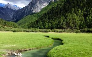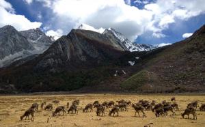 洛绒牛场被“日松贡布”三座神山环绕,贡嘎河从草场穿梭,林间溪流潺潺,与牧场木屋交相辉映,构成了一幅原始而又迷人的景色,令人们进入返朴归真的境界。洛绒牛场是亚丁景区内最著名的住宿地点之一。