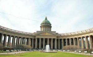 喀山大教堂坐落于涅瓦大街,由安德烈·沃罗尼欣设计,建于1801至1811年,它的建筑风格受到罗马圣彼得教堂的影响,外貌具有典型的18、19世纪帝国建筑特征。喀山大教堂的正前方如今是一座广场,供游人休憩和玩乐。 教堂呈十字形排开,柱廊排列成半圆形,一直延伸到涅瓦大街上,掩映着背后高达70米的教堂圆顶。