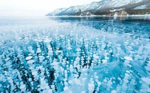 奥国伊岛(南端)-位于小海中央,被称为小海海舌。奥利洪岛的心脏,自然能源最多的地方。在岛上可以看到很多萨满教遗址,参观佛教塔,南线感觉上冰面更平,有镜面的感觉。北线适合拍蓝冰,但如果是拍冰裂,冰花,南线更为合适。结冰的湖面中,还有一个个的小气泡,像是欢呼雀跃的小精灵,在向外跑着。如有幸还可拍到冰瀑,冰凌,水墨石化的山川,裂纹等奇观。