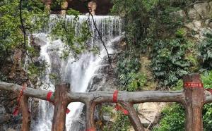 古东瀑布景区内有地下涌泉汇集形成的多级串连瀑布。古东瀑布比较特色的地方在于,园方在山石上开凿了很多石坑,配合铁链,可以攀爬,可让人尽情体验溯水而上的乐趣。进门后需要坐竹筏过渡,江面上有“刘三姐”和游客对山歌,攀爬瀑布大约需要30分钟,瀑布水流有缓有急。