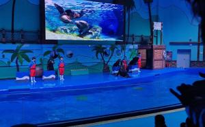 石家庄极地海洋世界坐落于动物园餐饮中心西行50米,建筑面积4000平方米,集科普知识、娱乐、展演为一体,海洋馆主题展演馆共有海洋类动物40余种,2000余条尾。石家庄动物园海洋馆建筑造型独特,梦幻壮观。它的旁边绿树环抱,花团锦簇。在这里你可以看到聪明伶俐,惹人喜爱的海豚海狮,能给大家带来精彩的表演;还有带着不羁热情的美人鱼和您一起进入遥远的童话世界。“珊瑚花园”展示了来自于南太平洋——印度洋的珊瑚物种及珊瑚礁鱼类,还原了珊瑚自然生态环境;水母,用自己生命的轮回诠释者对海的眷恋,短暂却精彩至极。