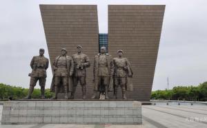 渡江战役纪念馆位于合肥滨湖新区,由北向南由解放广场、纪念馆、总前委雕像、胜利广场、胜利塔依次展开,主展馆展览区达3000多平方米。参观完展馆外的‘胜利之星’纪念塔和五前委雕像之后,从主展馆中间的台阶直接上到二楼观景台。进入二楼观景台,迎面便是一座巨大的群雕,这就是反映占领总统府场景的“胜利之师”。这座全长50米、高8米、局部高12米的群雕,采用了写实和写意相结合的创作手法,是目前国内最大的室内艺术群雕。
