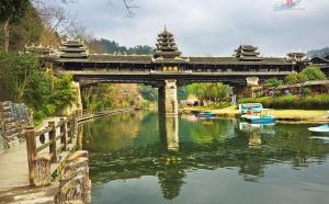 通道皇都侗寨位于平坦乡。由头寨、尾寨、盘寨、新寨四村组成,历史悠久,是侗民族民风民俗最为完整亮丽的地区。前三个寨子连为一体,新寨则是处于河对岸,由普修桥和公路相通,与另三个寨子隔河相望。皇都侗寨的古老建筑保留比较完整,现有侗族吊角楼群,4座鼓楼,和1座风雨桥-普修桥。