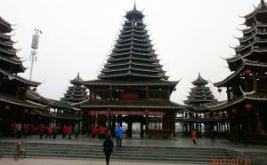 万和鼓楼位于县城舞水河东岸,是侗族标志性建筑。2005年建成,由中心芦笙楼、琵琶楼、地筒楼与两个对歌楼五个鼓楼组成,并由360个龙灯组成的的檐廊将外围四个鼓楼相连,围成一个圆宝,护住中心鼓楼,比喻龙到此处护着宝永远不走了。