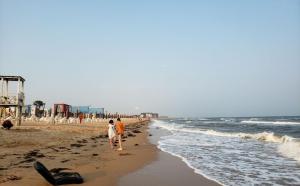 兴城海滨风景区位于兴城市区东部沿海的兴海湾,当地人也称为“兴海公园”,是一片长约1.5公里的天然海滩。这里地处渤海北部海岸,沙滩坡缓宽阔、水质洁静,有多个海水浴场和各种嬉水游乐设施。每年夏季,众多游人来这里游泳、赶海、晒太阳,或是全家人来吃海鲜,这里也是拍摄日出的好地方。